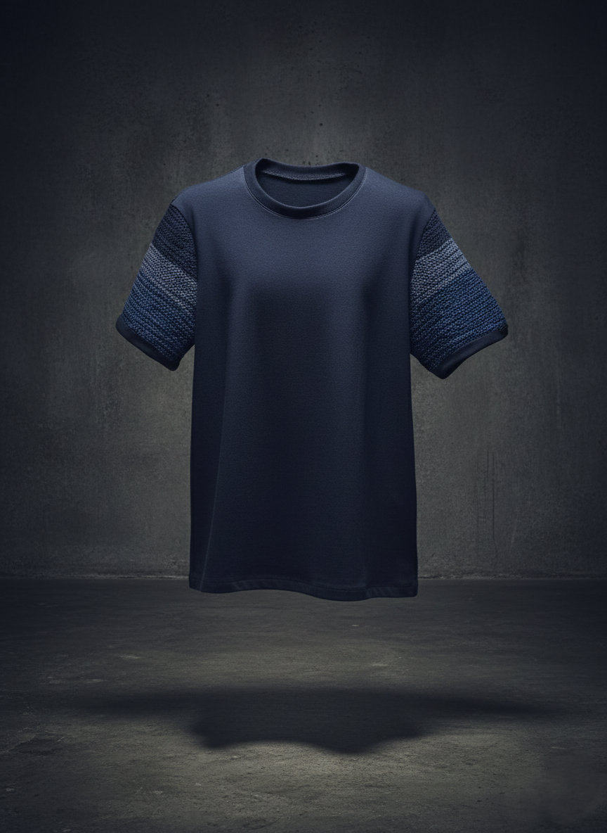 Tričko s ručne tkanými rukávmi nesie príbeh pomalej, luxusnej výroby z recyklovaného materiálu. Každý detail je tvorený ručne, pomaly a precízne. Každý kúsok prináša pokoj a hodnotu, ktorú nositeľ pocíti na vlastnej koži.