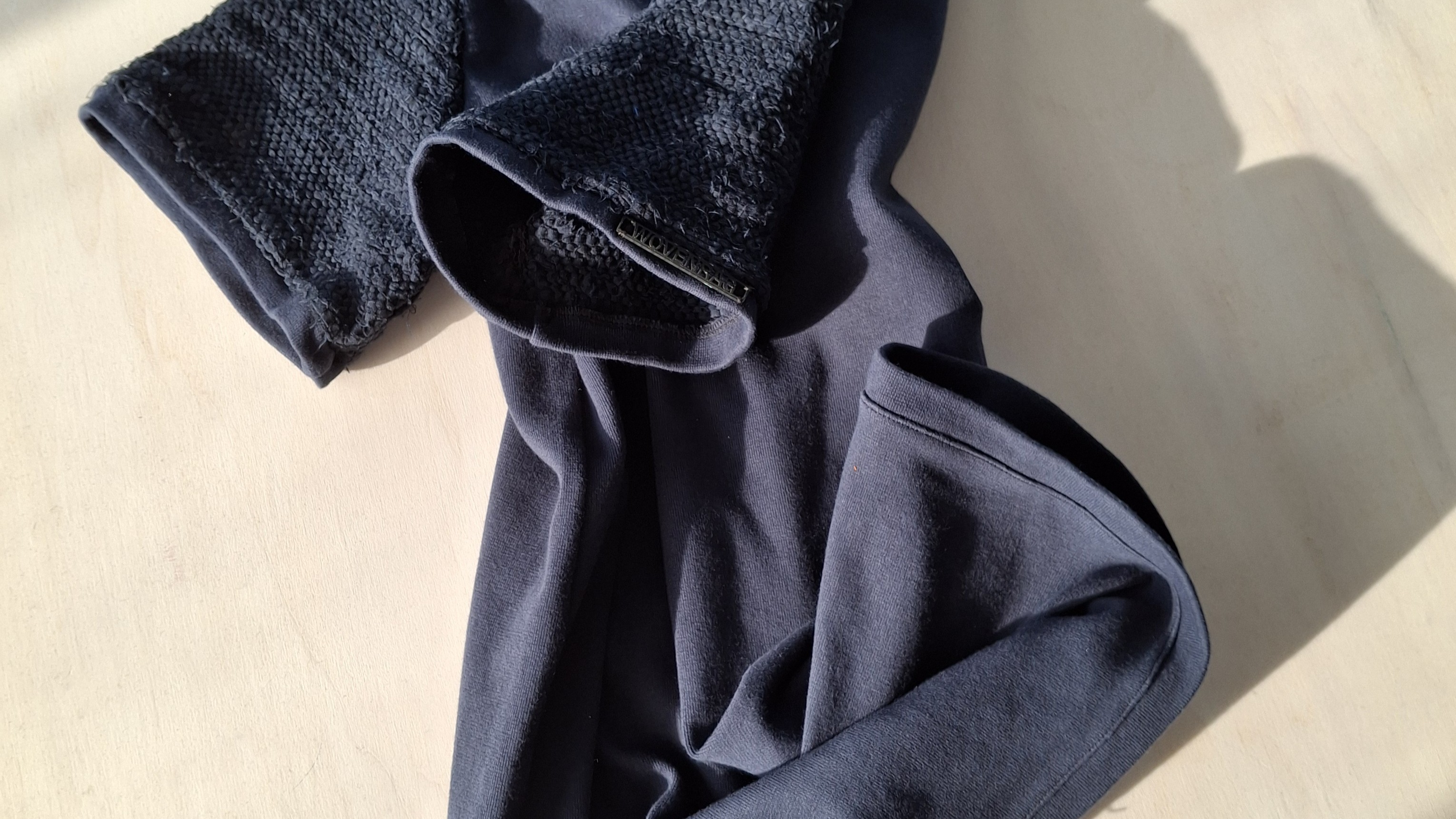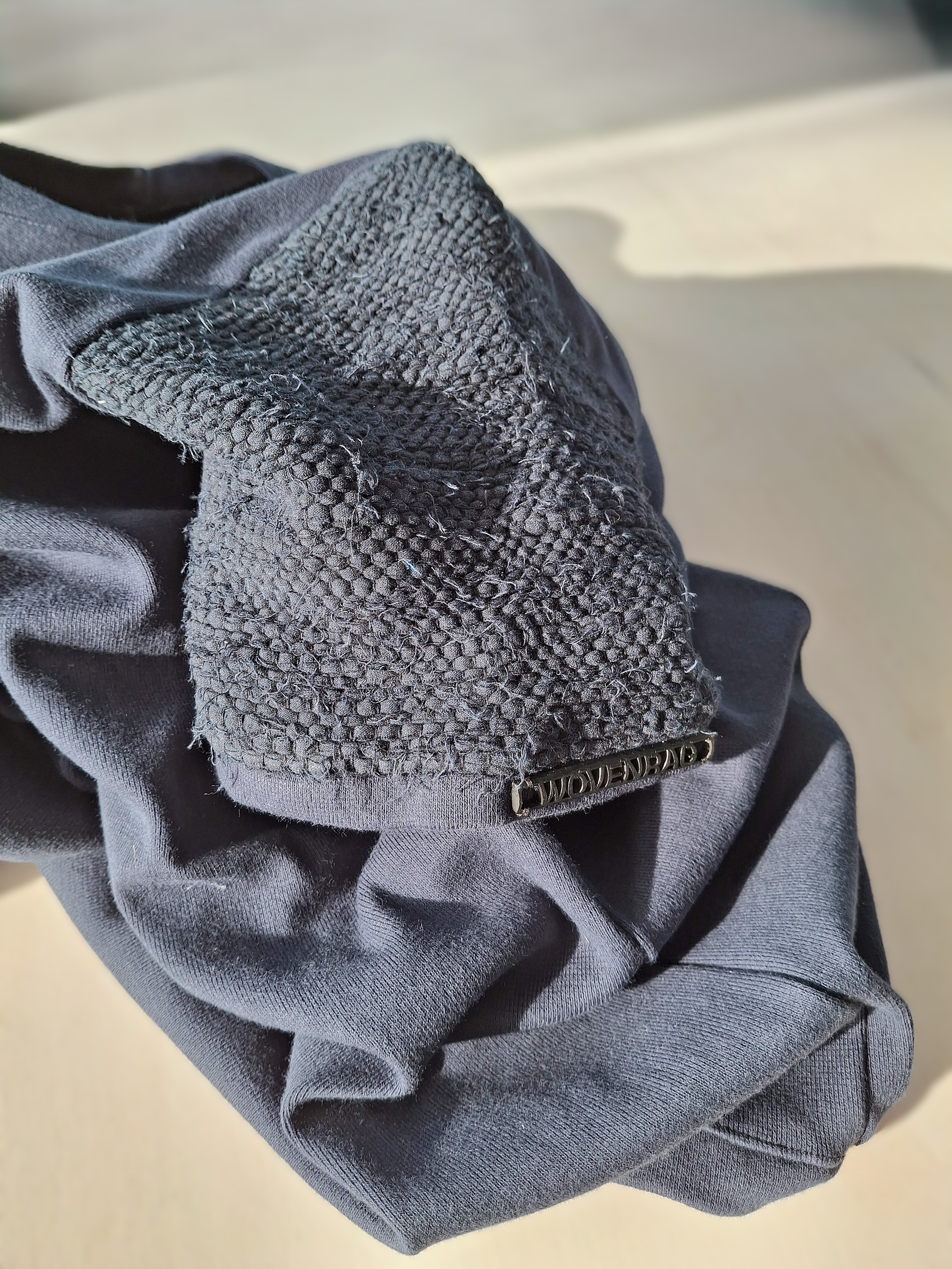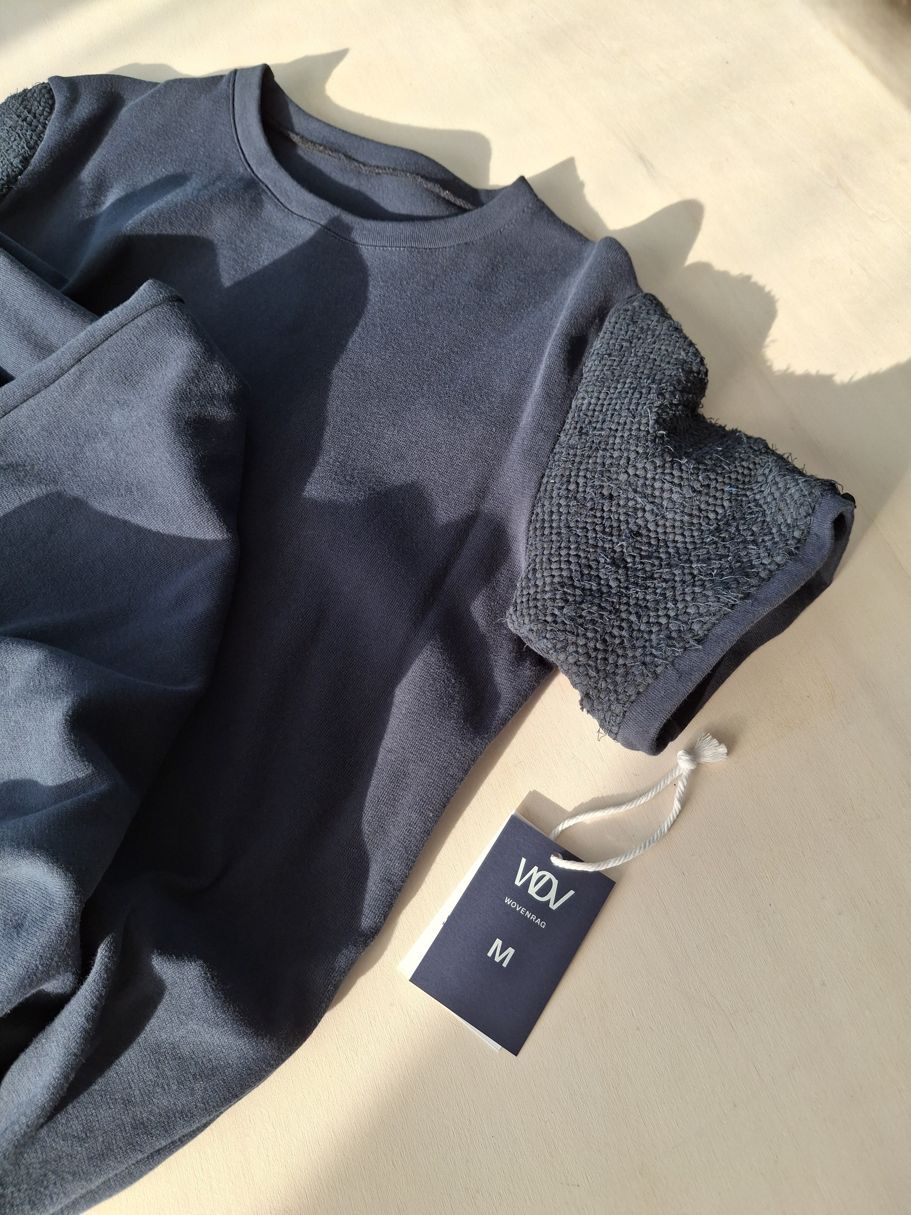 Tričko s ručne tkanými rukávmi nesie príbeh pomalej, luxusnej výroby z recyklovaného materiálu. Každý kúsok prináša pokoj a hodnotu, ktorú pocítite na vlastnej koži.